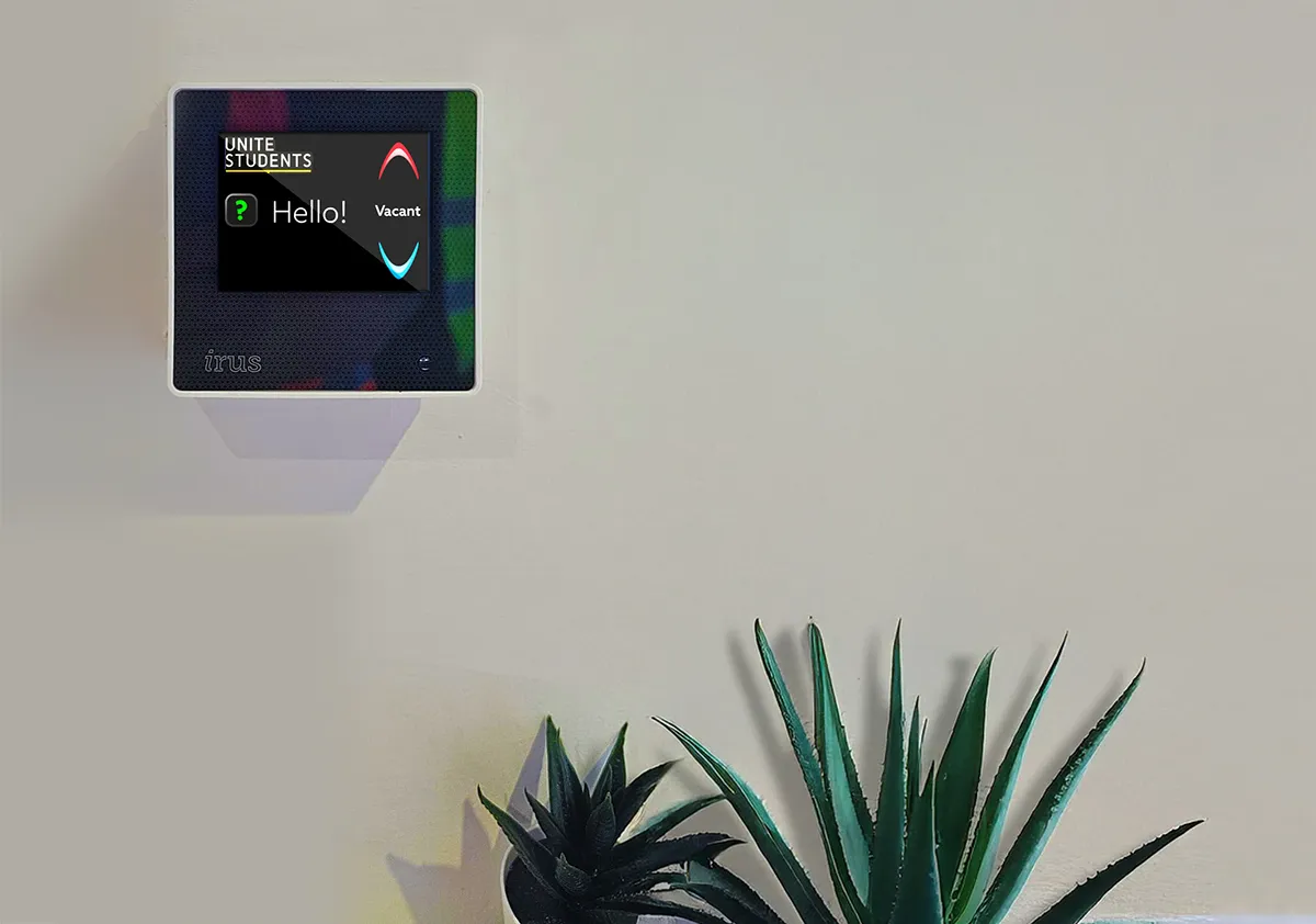 LED touch-screen, microwave occupancy sensor, Direct-to-Room communication for messaging, nudges and instructions, and integrated Bluetooth connectivity are just some of the features that make Irus the market leader in multi-occupancy building services management.