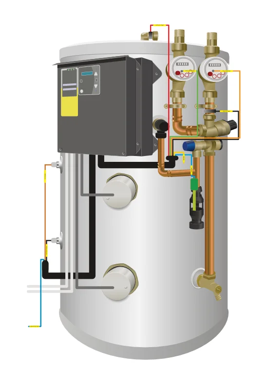 4x temperature sensors (2x internal, 1x on incoming water supply and 1x on outgoing hot water) help operators comply with legionella management processes.